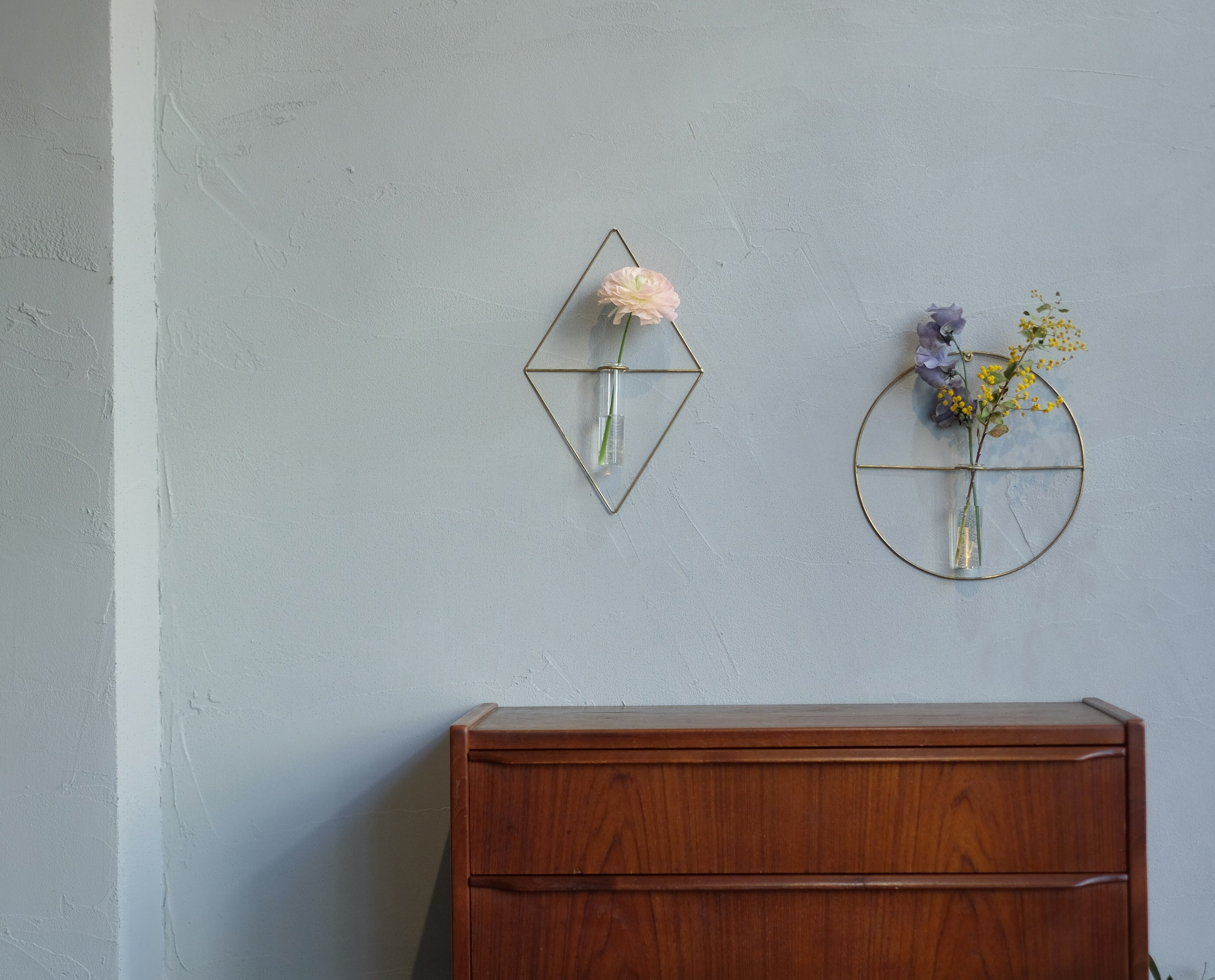 寂しかった壁にさりげない彩りを加えてくれて、ふとしたときに目に入ると気持ちが明るくなります。「春はミモザを飾って、夏になったらひまわりを飾ろうかな 」なんて考える時間も楽しいです。