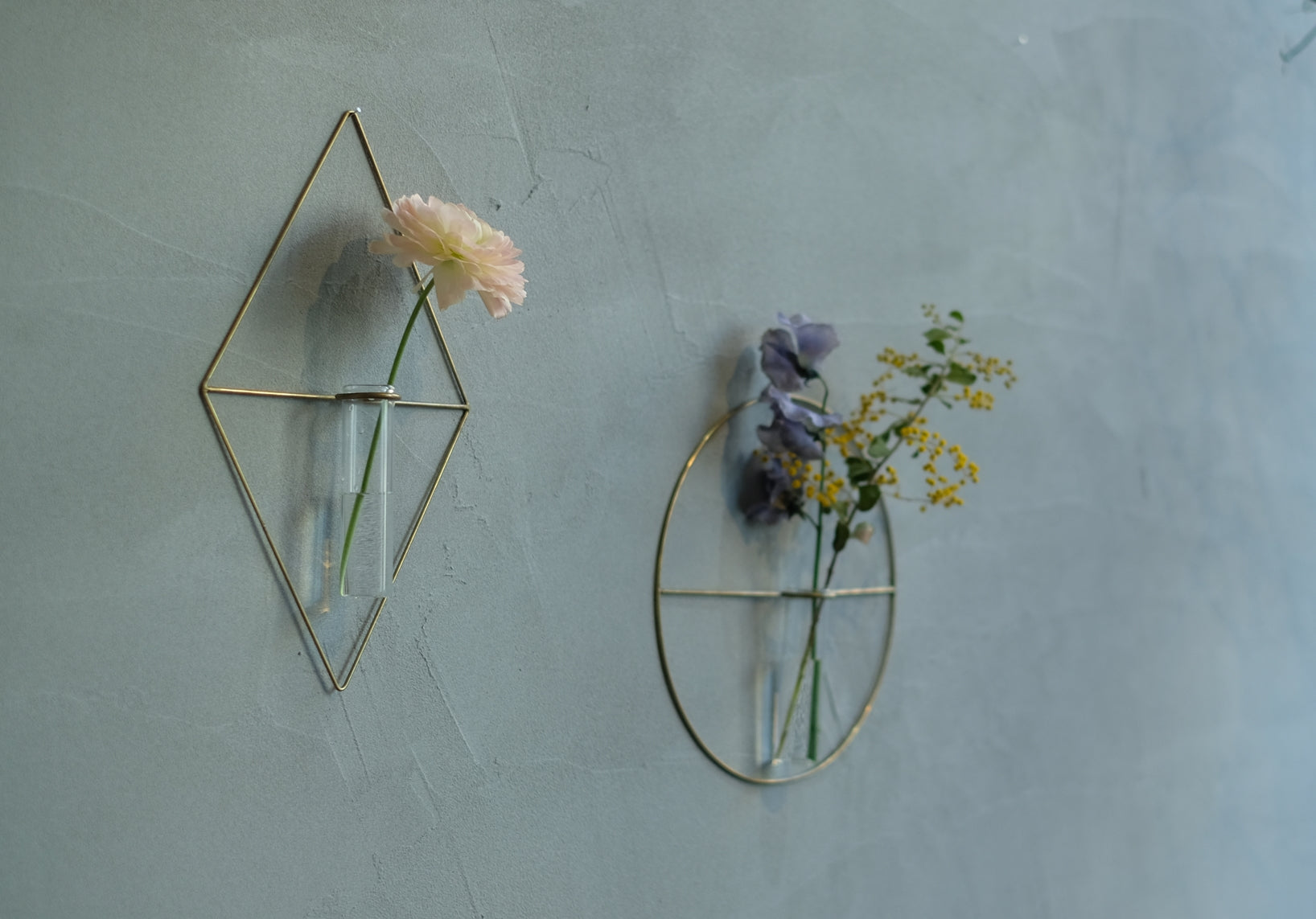 この一輪挿しはシンプルな形で奥行きは浅めなので、目立ちすぎず適度な存在感があって色んなテイストのお部屋に馴染みます。トイレや玄関など小さいスペースの中に飾っても邪魔になりにくく、コンパクトなので複数使いで壁を飾るのもおすすめです。